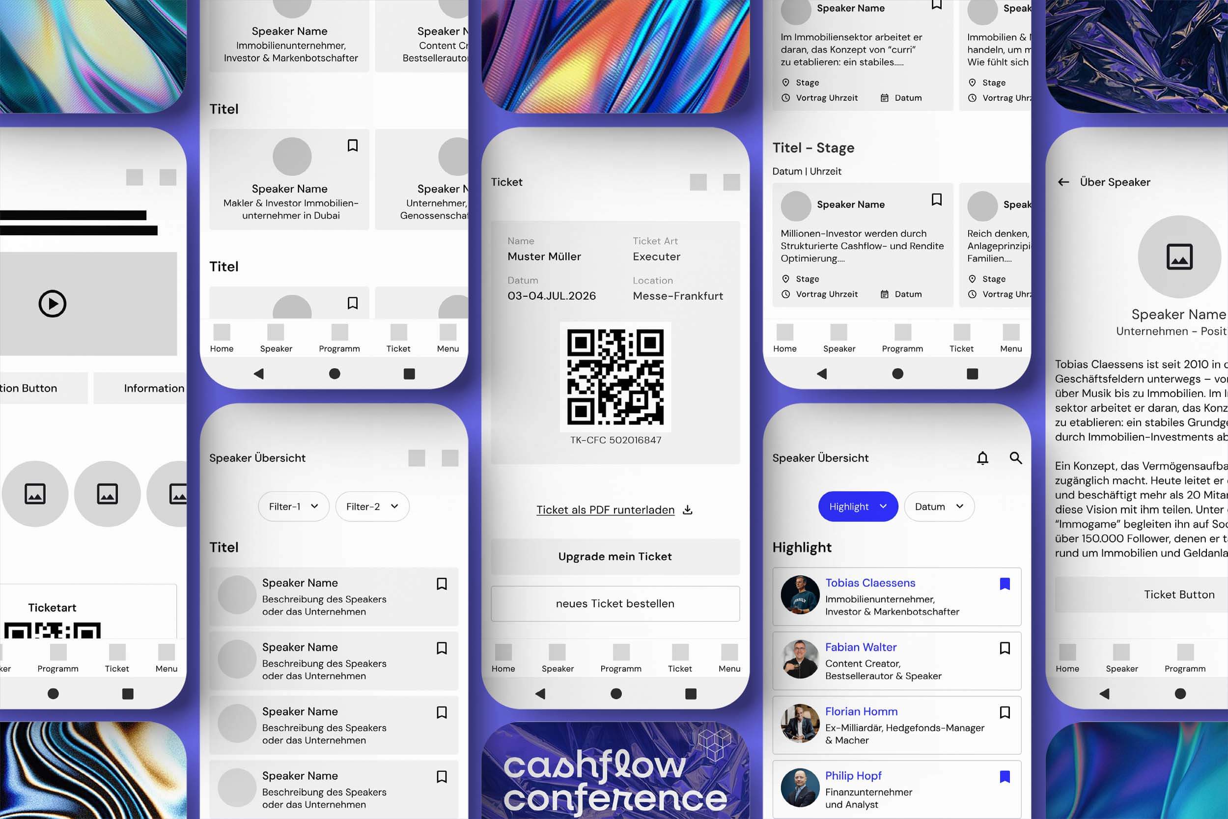 Die Cashflow Conference App (CFC-App) ist eine mobile Lösung, die das Erlebnis der Konferenzbesucher vor, während und nach dem Event verbessert. Durch Nutzerforschung, Interviews und Tests direkt vor Ort wurde die App entwickelt, um reale Kommunikations- und Usability-Probleme der CFC 2024–2025 zu lösen. Das Ergebnis ist ein persönlicheres, strukturierteres und stressfreieres Event-Erlebnis, das auf Klarheit, Geschwindigkeit und Nutzerorientierung basiert.